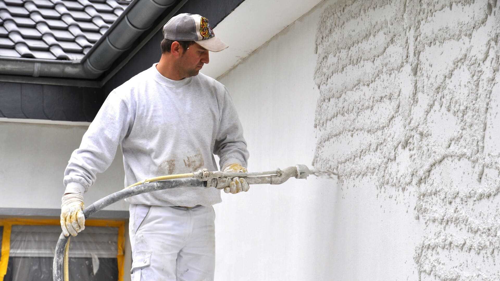Fehlerhafte stellen im putz müssen daraufhin mit einem putzmörtel ausgebessert werden.
